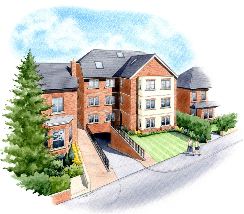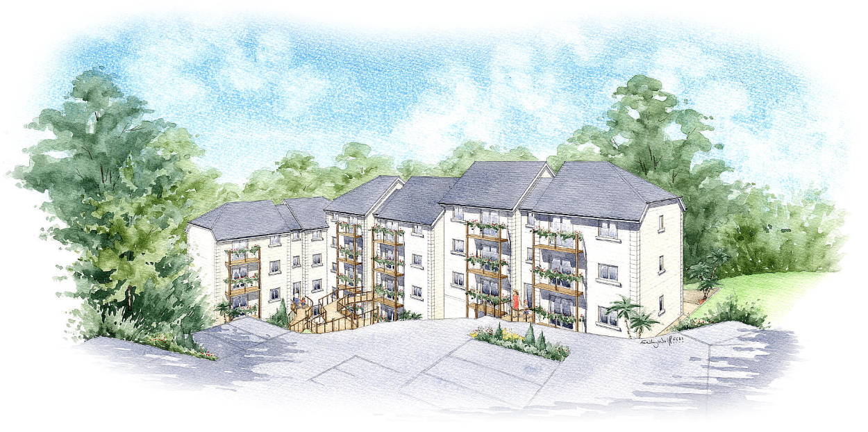 Artist impression of the view of a set of luxury flats. Nicer than an architect's drawing.