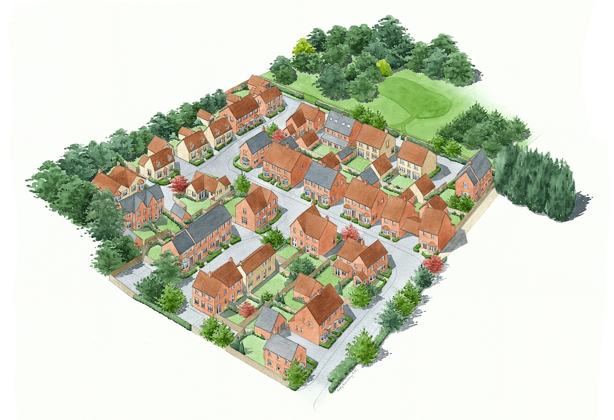 This well-spaced view of some new homes, each sitting in a fair bit of ground.